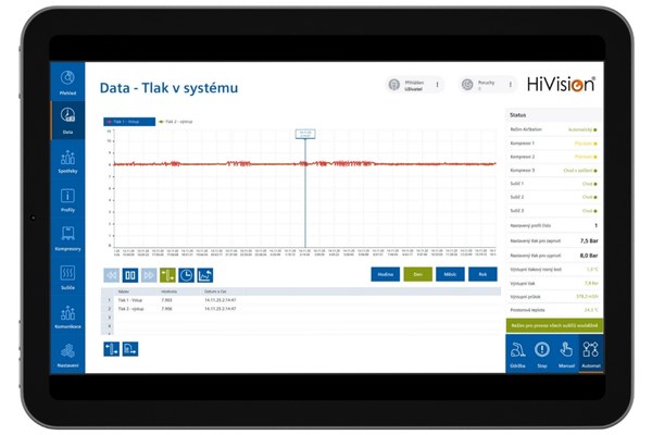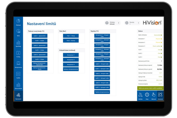 Náš riadiaci systém poskytuje prehľadné a intuitívne prostredie na správu, ovládanie a monitoring všetkých zariadení zapojených do výrobného procesu. Vďaka modulárnej architektúre dokáže HiVision® prepojiť širokú škálu technológií potrebných na výrobu stlačeného vzduchu či dusíka a ponúknuť tak jeden centrálny bod riadenia celej stanice.