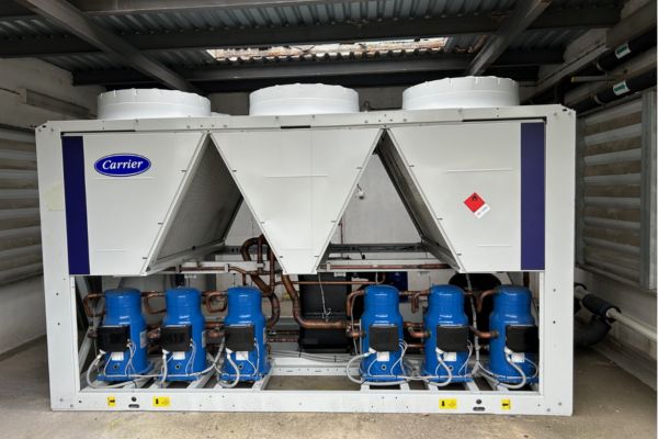 Hlavnou požiadavkou zákazníka bolo, aby sme dopojili nove technológie v krátkom čase. Vďaka nasej dlhoročnej spolupráci aj v rámci kompresorovej techniky, sme presne poznali podmienky inštalácie a náročnosť celého procesu. Výmena pôvodných chillerov za nové účinnejšie bola náročnejšia pre prístup a celkový rozsah prac.